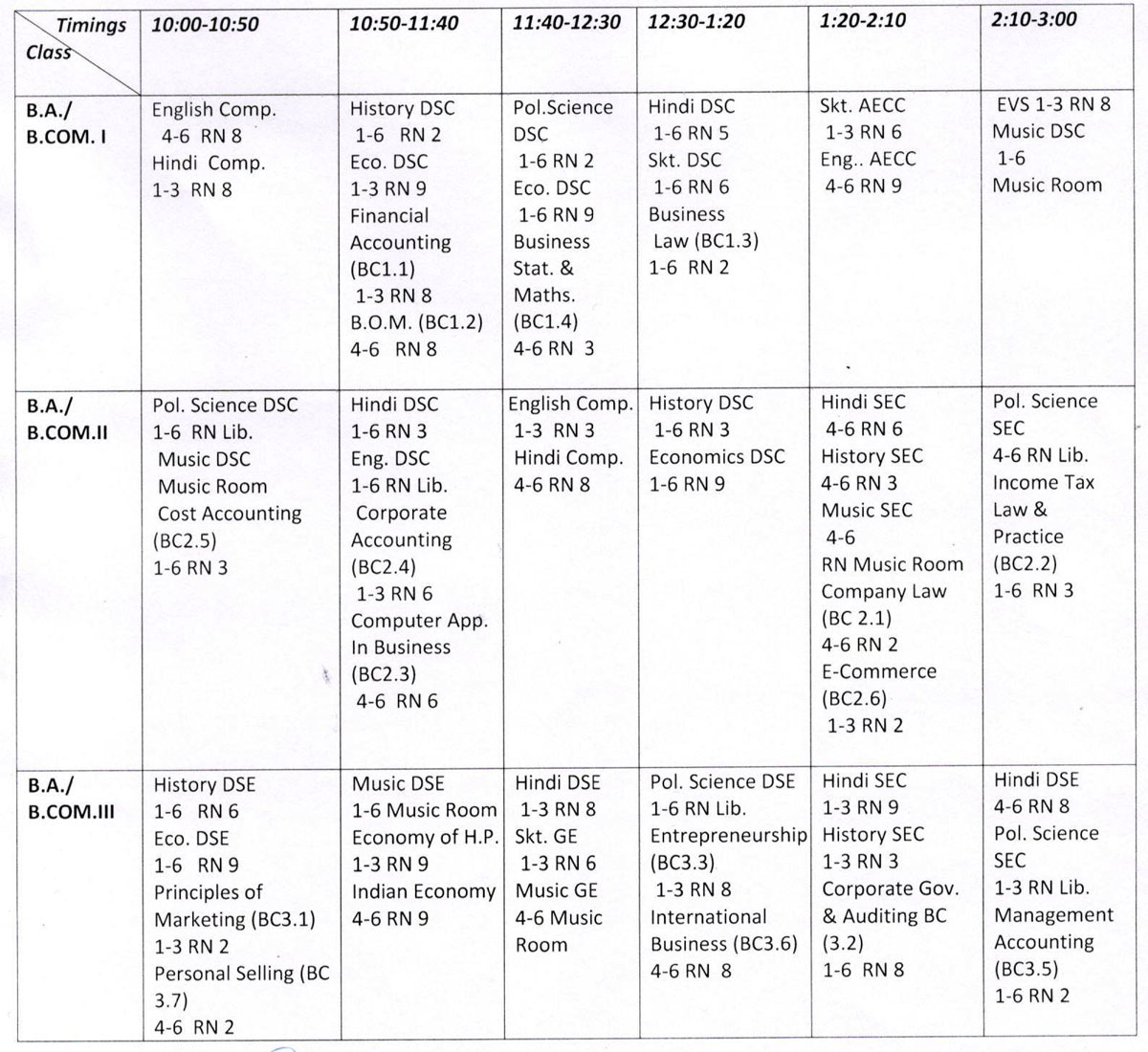 B.A / B.Com. For Session 2023-24